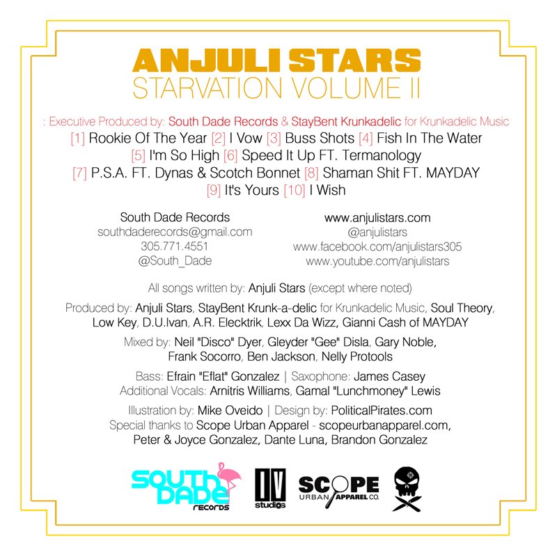 Please do yourself a favor and go Download Starvation Volume II by Anjuli Stars FOR FREE! Then follow @anjulistars and @southdade records on twitter and like South Dade records on facebook. Stay tuned for more big things from Anujuli, South Dade and other Scope Artists.