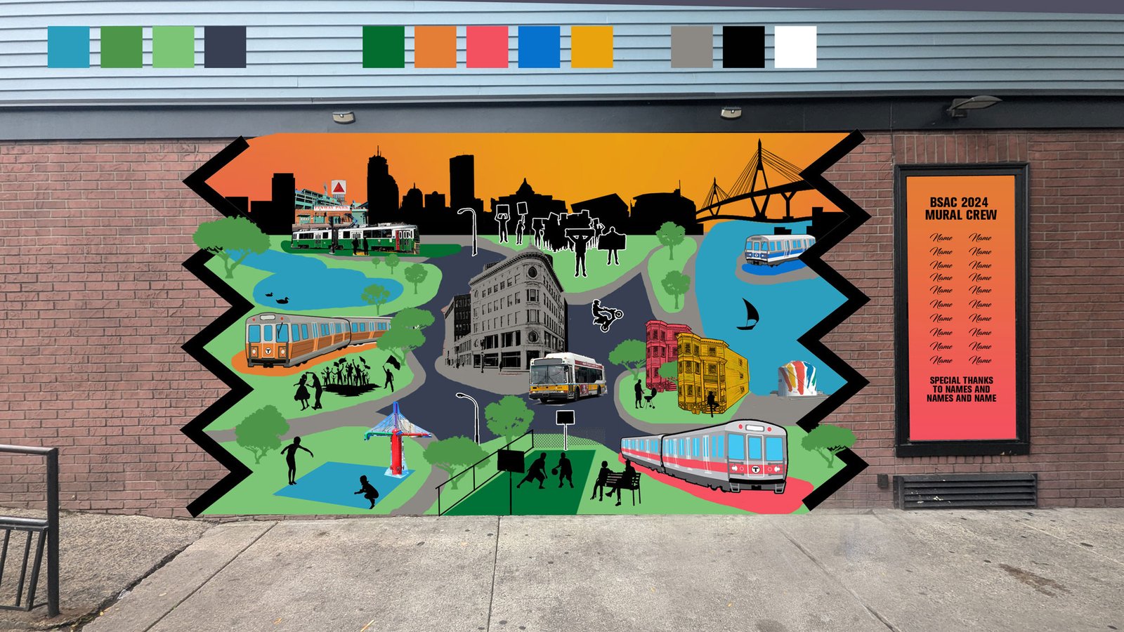 This summer my studio partner and I were invited by a former classmate, now teacher at Boston Student Advisor Council, to do a mural project with her students as a capstone project for their summer session. The mural was designed in collaboration with the students and the owner of the building to depict Boston from a youth perspective in on a wall in the heart of historic Nubian Square. The project was completed over the course of a month from first ideation session to completed wall. This was an incredibly rewarding experience for me and Franco who have grown up inspired by the ‘Faces of Dudley’ Mural and recently have enjoyed an influx of amazing public art in the area, much of it by our friends and mentors. It is an honor to be able to contribute to this legacy and to do so alongside such an inspiring and powerful group of young folks. Their fresh ideas, love for their community and commitment to justice give me hope and shine through their work. It was also an amazing expereince to spend a couple weeks working with our neighbors ‘down Dudley’. We made many new friends and were reminded daily of how much our work was appreciated and how much it meant to the neighborhood to have some new color on the corner.