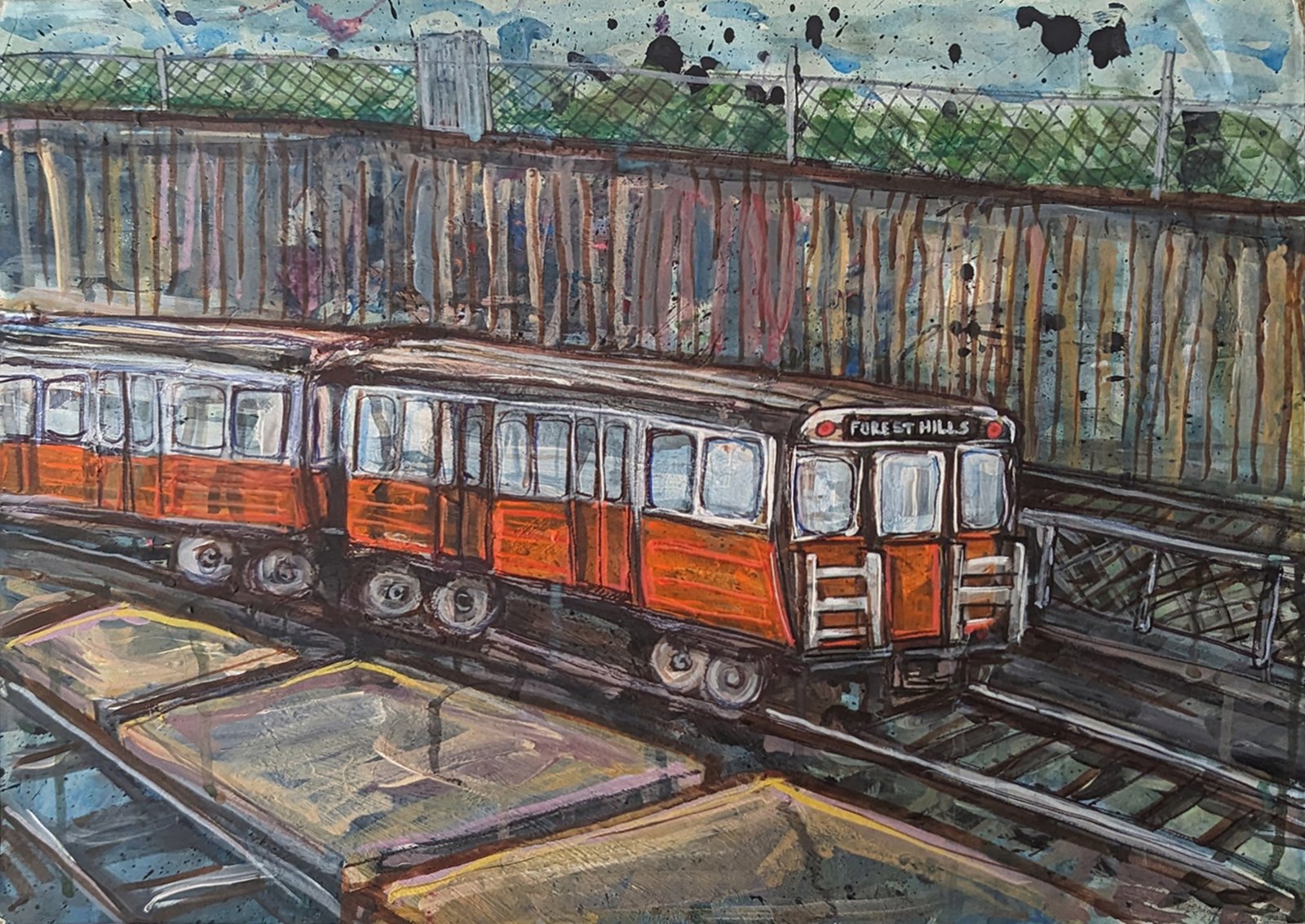 A0319 – “Corridor” [In Private Collection] Acrylic, Ink and Marker on Cardboard 2023