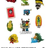 We offer these images and more as stickers and buttons via Pen & Sword. All the funds we generate off of these designs are being directed to producing more stickers and materials and making them available to community organizations. We also offer the designs themselves directly and through incredible collective efforts like the recent call for art by the Justseeds collective.