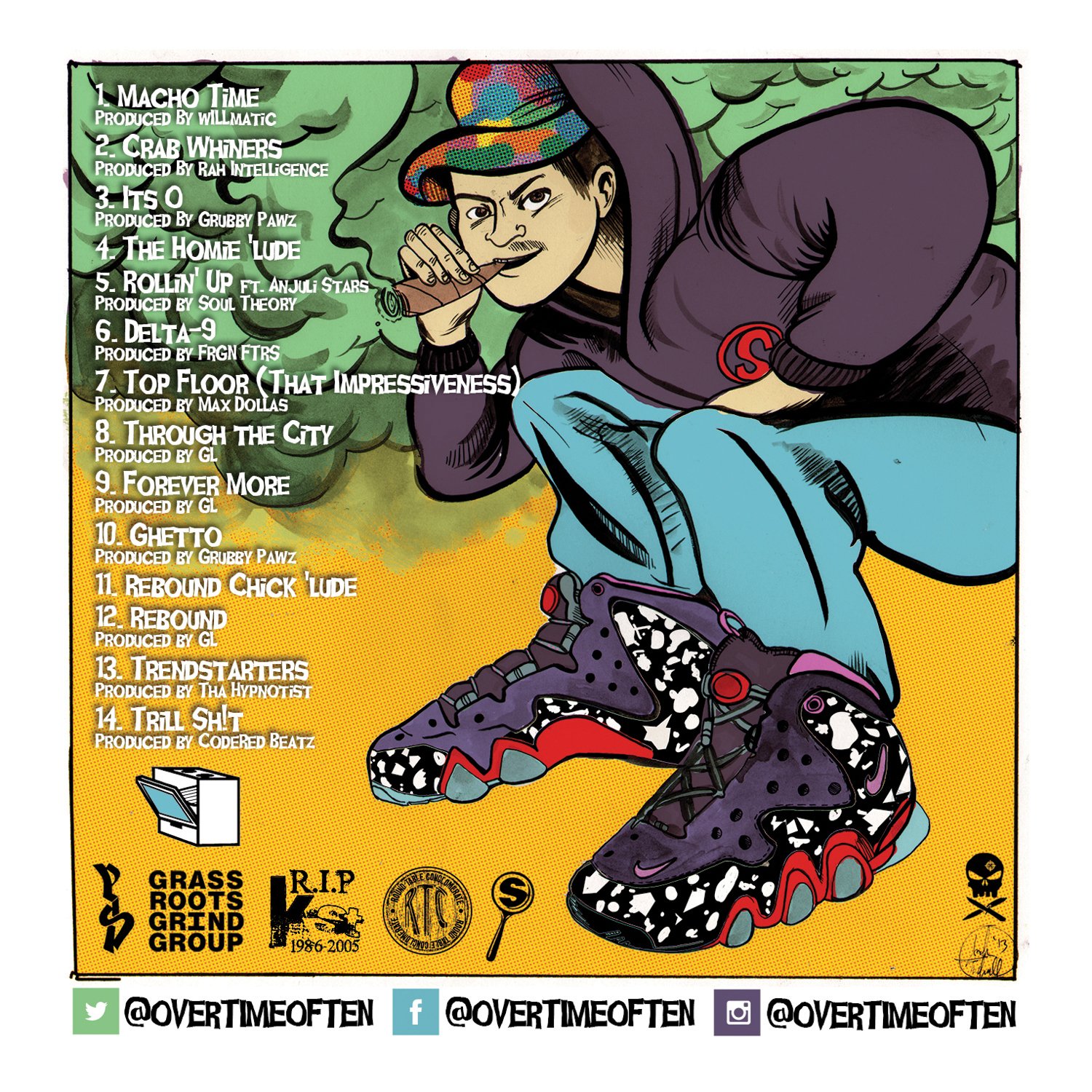 I have done a bunch of covers for O over the years, recently some of the singles leading up to the release of this project ‘Oven Door.’ While I had more of a direct hand in some of the singles, promo material, apparel and stickers, the album art for the project was a collaboration with an incredibly talented local illustrator Jack Turnbull who did the front and back art. I was brought in to finalize things, add logos, text and get it on the web. Really proud of the homie, this project has been a long time coming and is well worth the wait.