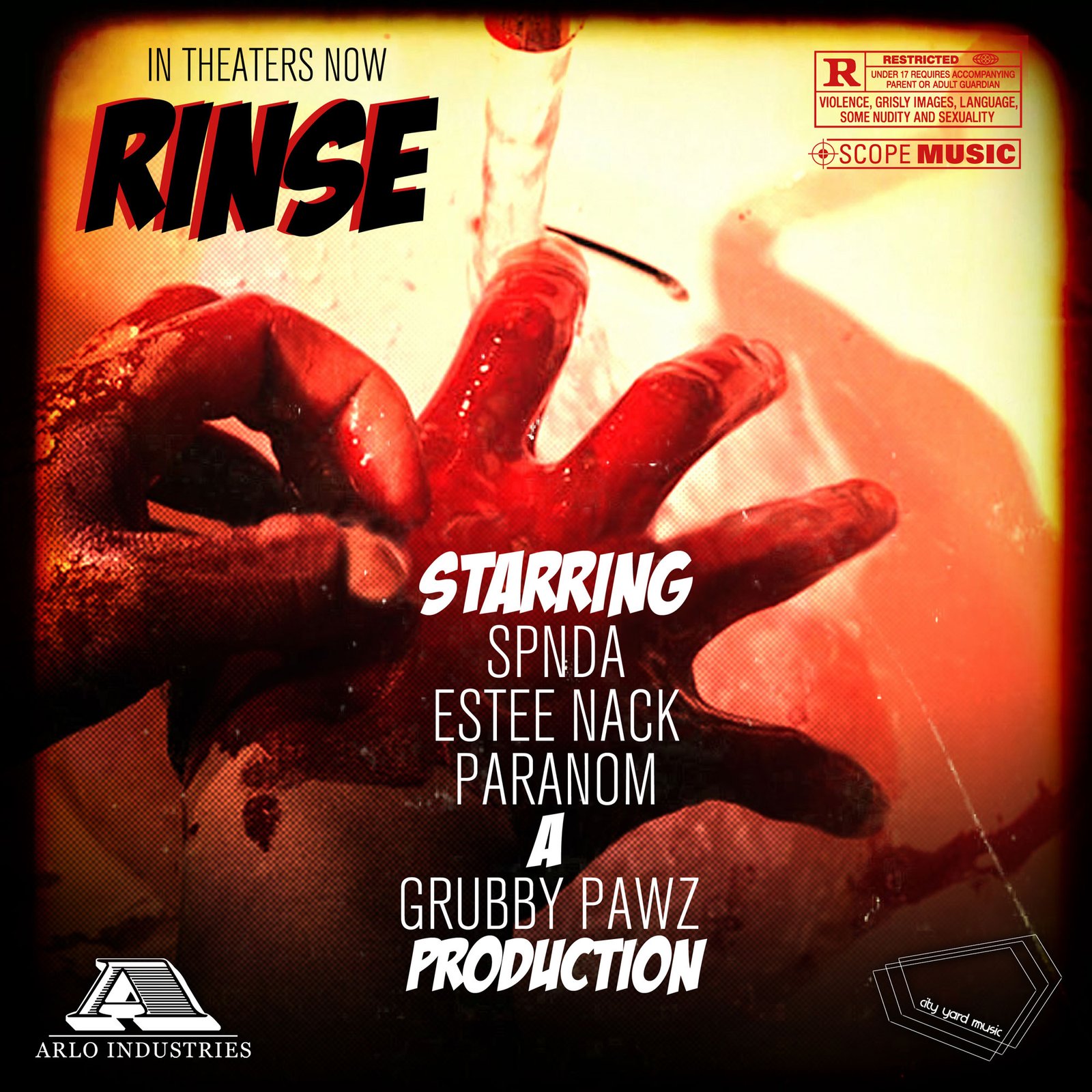For “Rinse” by SPNDA, Estee Nack and Paranom with production by Grubby Pawz we tapped into Grubby’s love of horror films and appropriated that for the type and texture. The bloody hands are also a reference to SPNDA’s ‘Shards of Glass‘ and ‘Mosaic‘ setting up ‘Steel Sharpens Steel’ asĀ a continuation of a narrative.