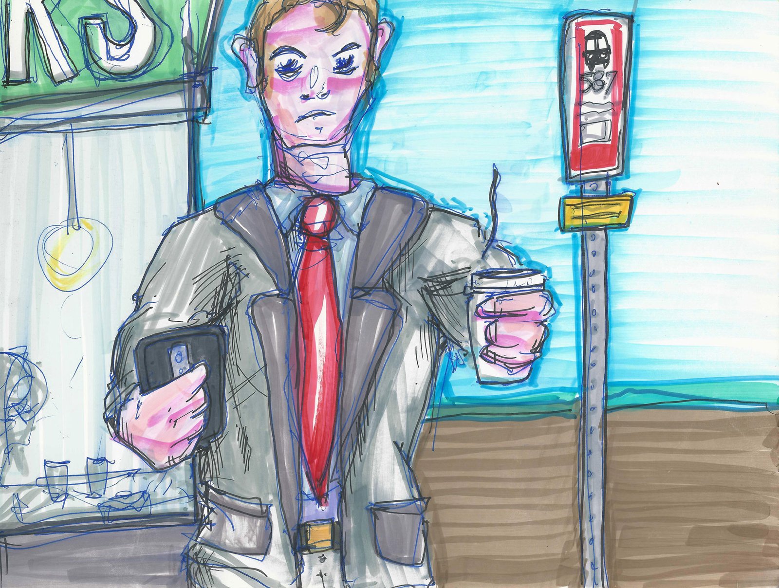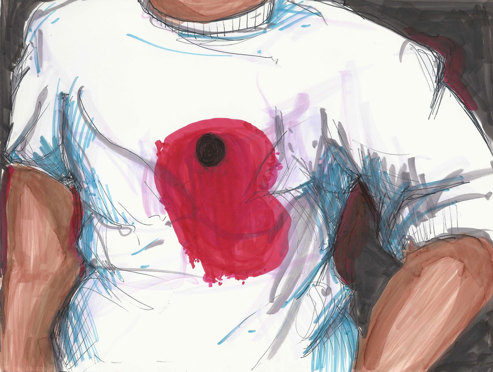 “Send or Erase” is a short story in illustrations dealing with the issues of police brutality, misconduct and use of violence against citizens, disproportionately against people of color and the use of film and video in catalyzing movement. The piece was originally done on a single 24 page paper sample book I picked up from an office mates recycling bin. I did no sketching or planning at first, starting with the first image and deciding it would make a good cover for a story. The narrative took format from there and I sketched out a quick thumbnail layout to figure out how to use the pages. The drawing was all done directly with markers and pens with no sketching or erasing. The piece asks us all to reflect on if we are complicit in state sponsored violence and/or using our power to push for justice and accountability.
