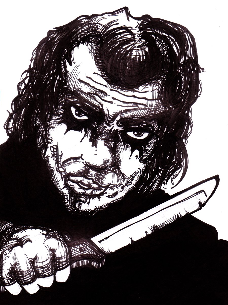 Blackbook piece of The Joker from Batman – back when the new movies were coming out. Ink on paper.